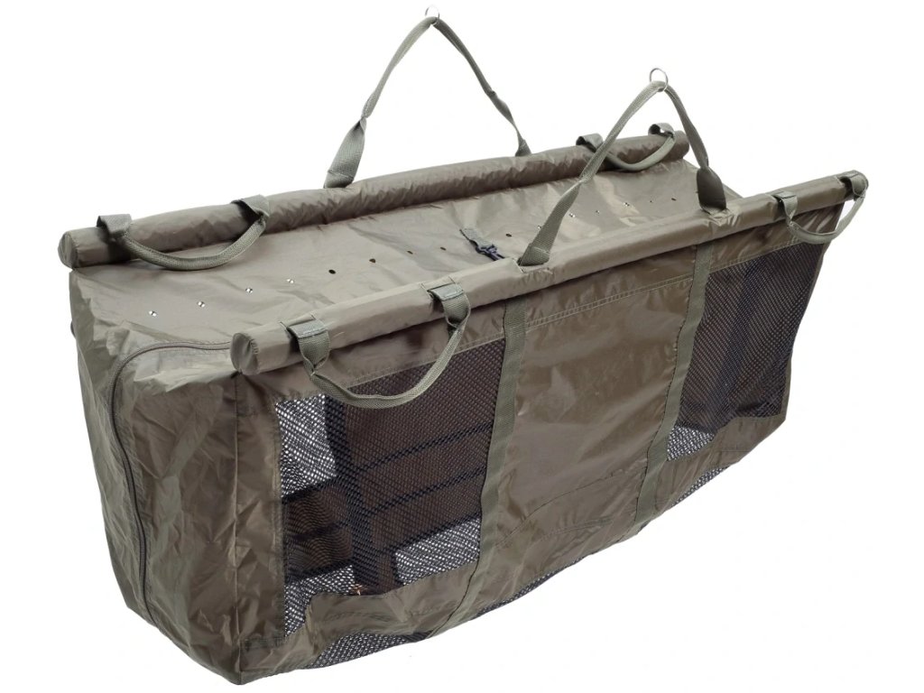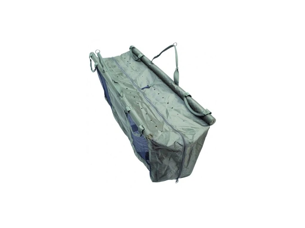 Velký vážící a přechovávací vak. Díky dvěma velkým plovákům a extra široké konstrukci v něm lze bez problémů ponechat i velkého kapra. Horní část je zajištěná zipem, pojistka na klip. Mikrotkanina zabraňuje poškození ryby. Rybu pak lze ve vaku i zvážit díky pevné tyčové konstrukci. Madla pro snadnou manipulaci a přenos. Rozměry: 122 x 62 x 40 cm. Váha: 1,02 kg.